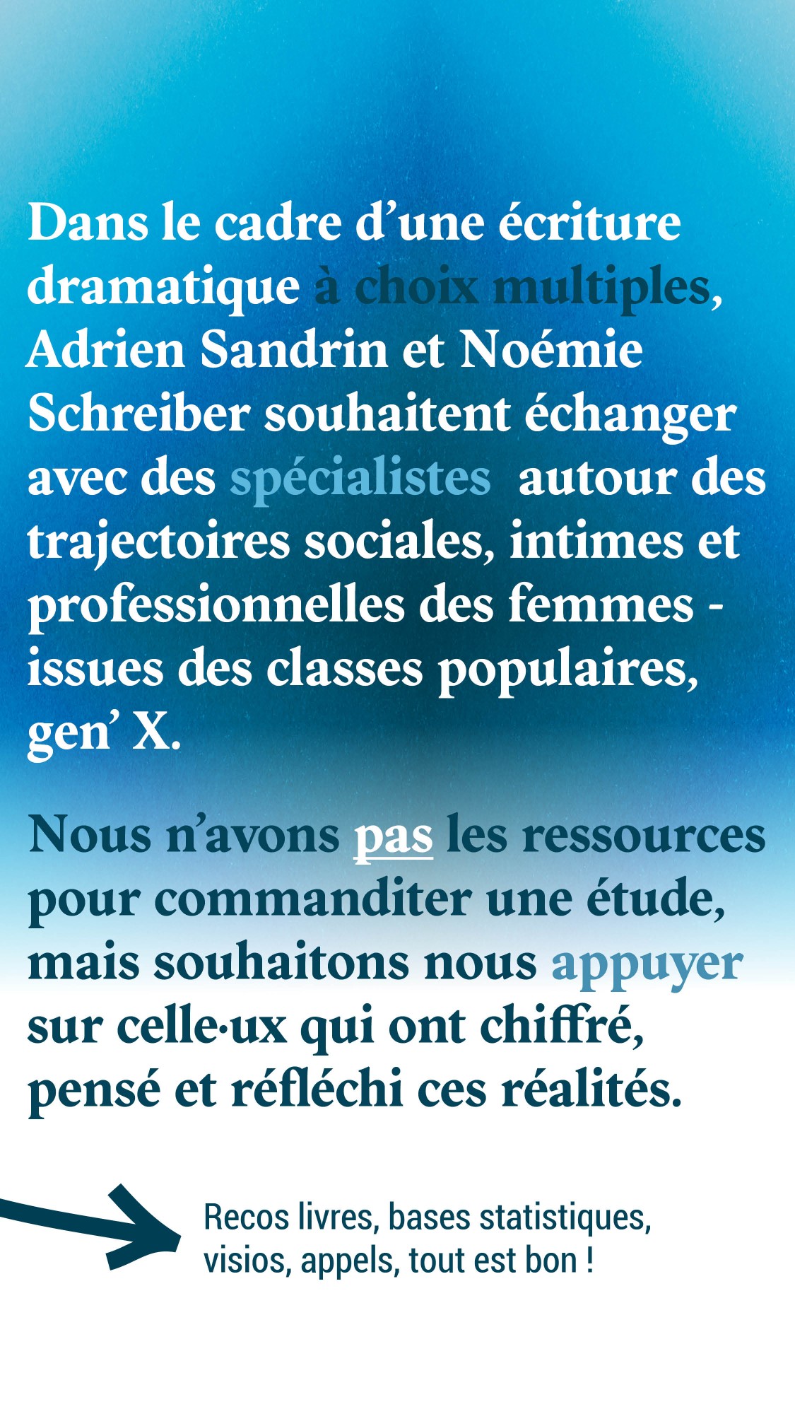 Le Fil Bleu compagnie cherche à échanger avec des spécialistes en science sociales pour aider à achever l’écriture d’un spectacle atypique…